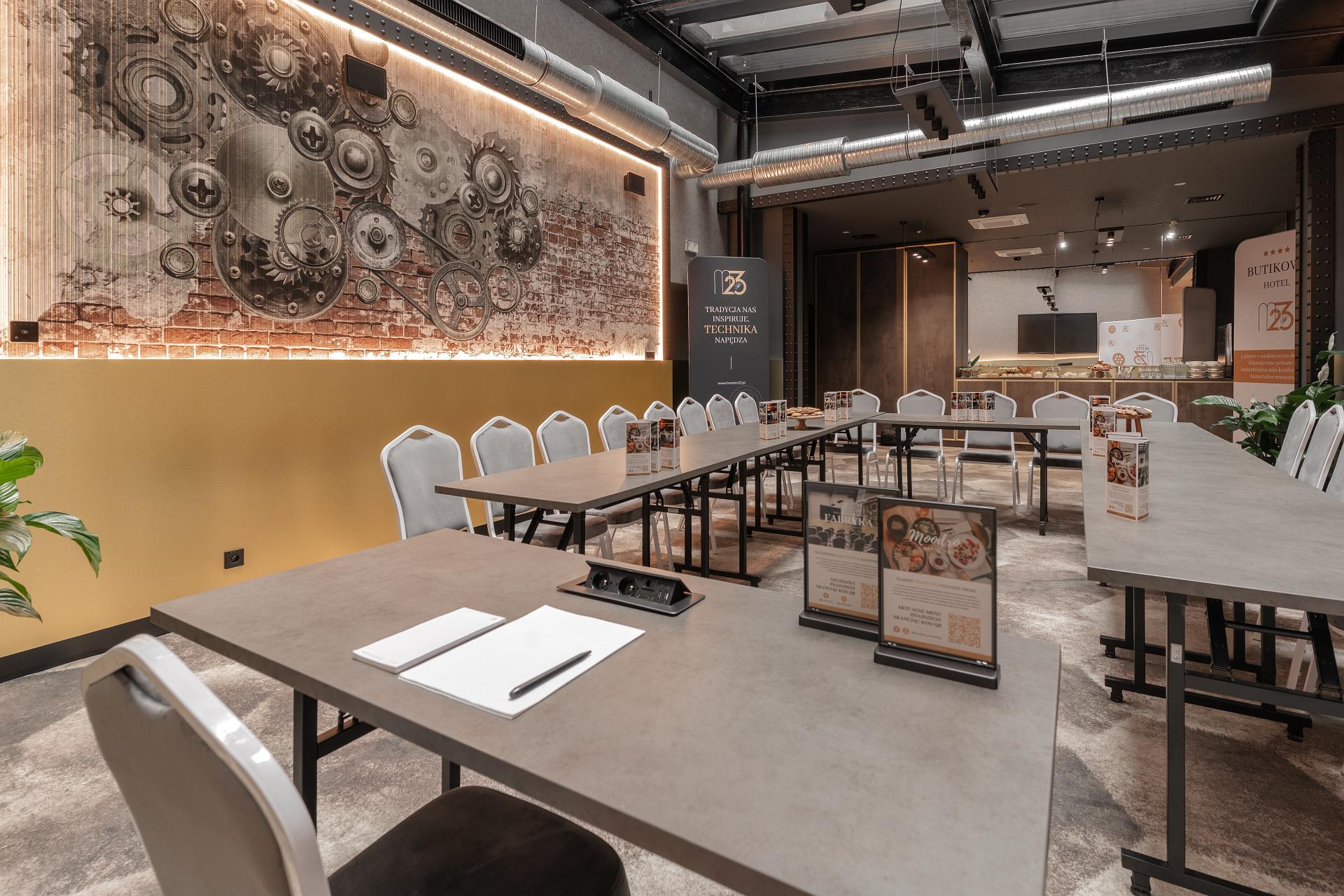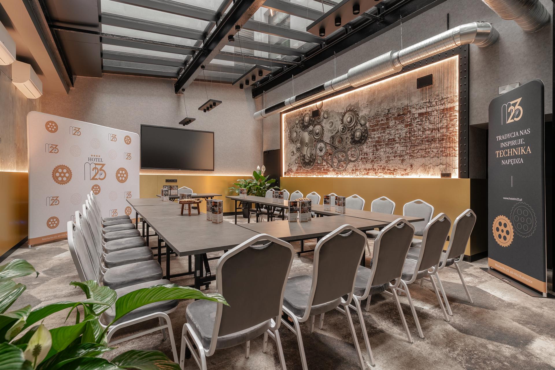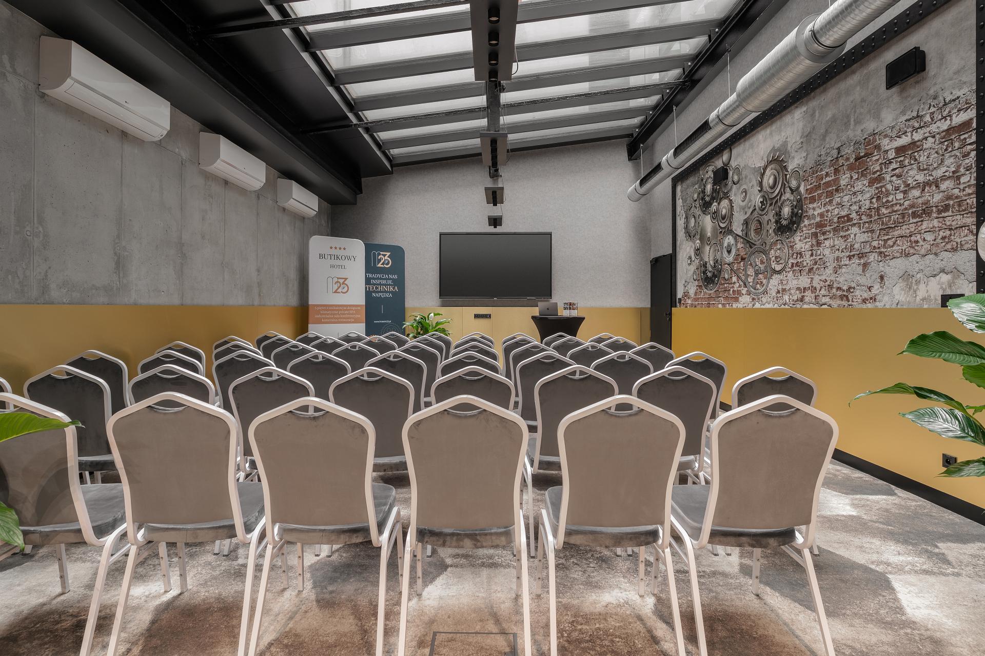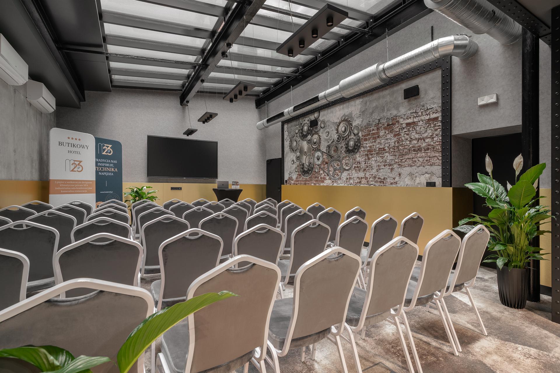 Sala konferencyjna Fabryka to doskonałe miejsce na organizację kameralnych spotkań biznesowych, szkoleń czy warsztatów. Usytuowana w sercu hotelowego patio, wyróżnia się niepowtarzalnym przeszklonym sufitem, który w naturalny sposób doświetla wnętrze i tworzy inspirującą atmosferę sprzyjającą koncentracji oraz kreatywnym dyskusjom.