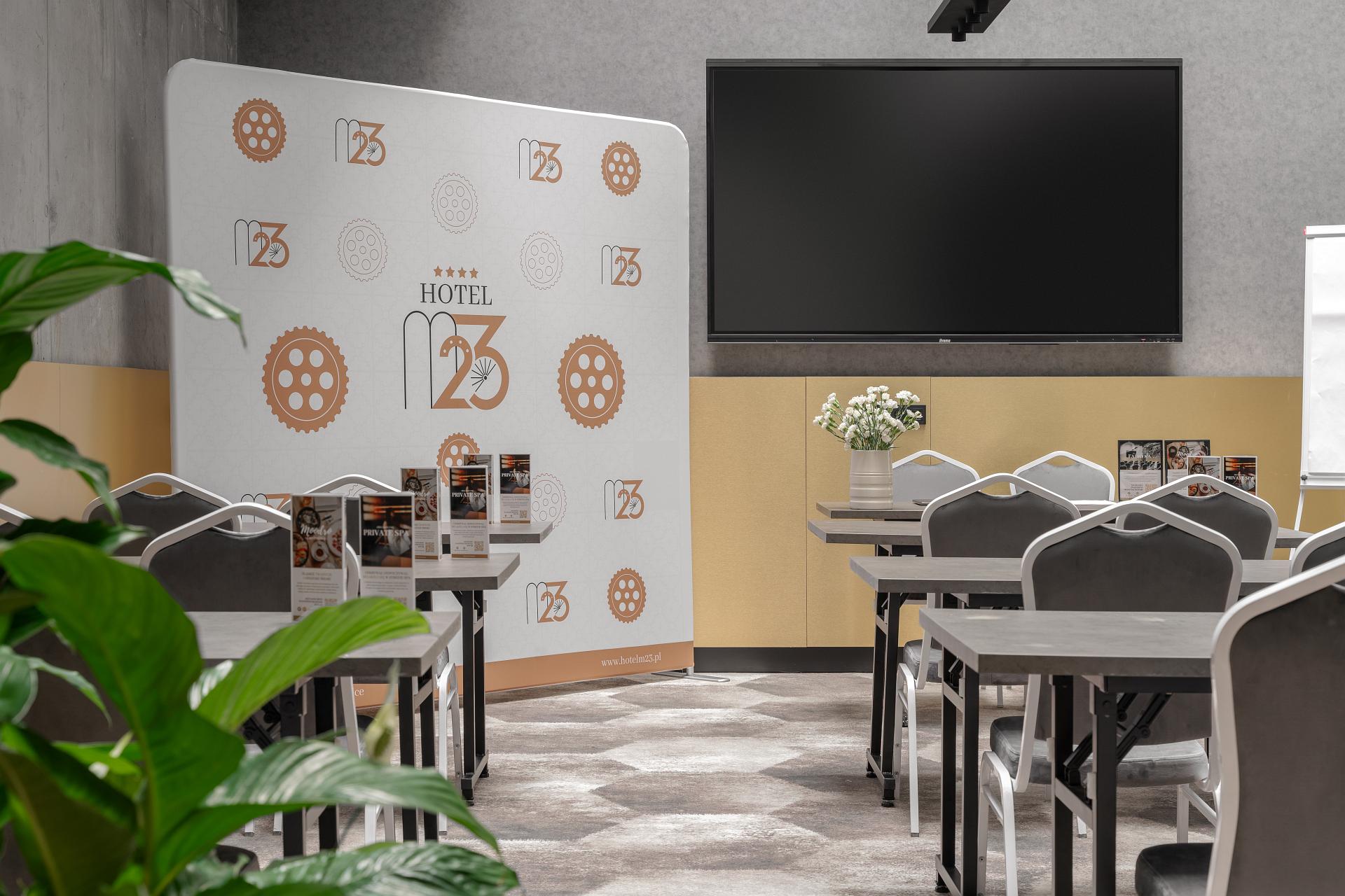 - pełne zaplecze audiowizualne: ekran dotykowy, system nagłośnienia, mikrofony, wskaźnik multimedialny